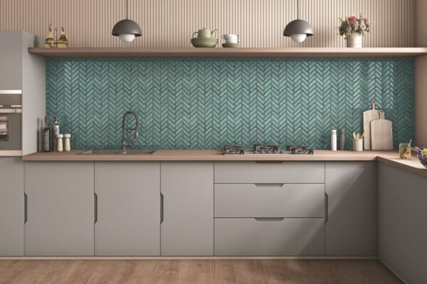 Herringbone VR Green reimagines the timeless herringbone layout with a refreshing green tone and refined surface finish. The distinctive zigzag pattern adds movement and depth, creating visually dynamic spaces that feel both modern and sophisticated.